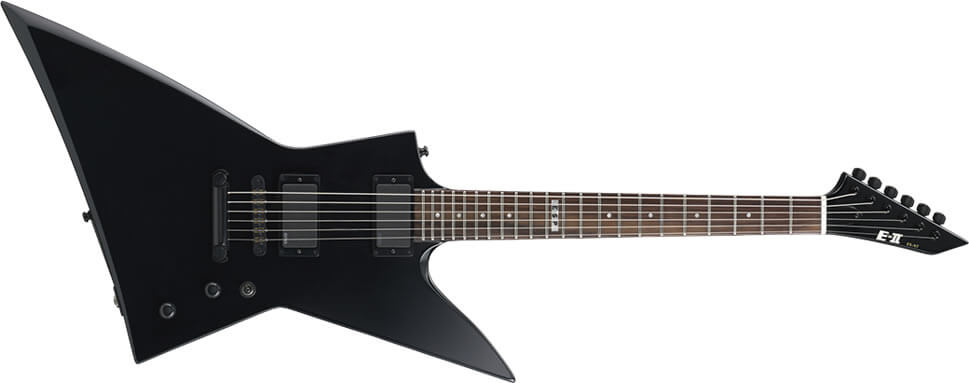 ESPの下位ブランドながら日本国内での生産により高品位なギターを送り出しているE-II からは、エクスプローラーを鋭角的にアレンジしたギターがリリースされています。ネック寸法やウッドマテリアル、ブリッジ形状は本家のスタイルを継承していますが、ネックがボディを貫通している「スルーネック」となっており、弦振動の持続時間を延長させています。EMGピックアップが採用されていることもあって、まさにメタル・ミュージックのための楽器に仕上がっています。